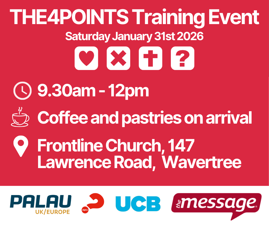 We’ll teach you how to tell people about Jesus using the tried and tested 4POINTS method – and how to train others to do it too.